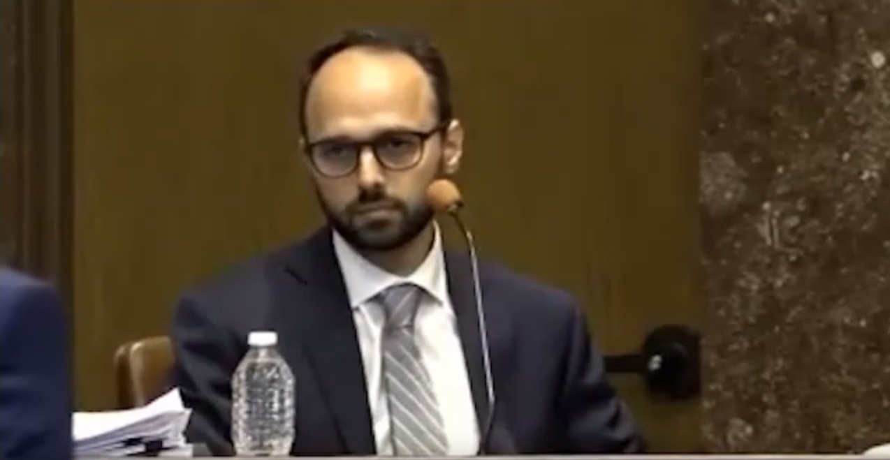 Dr. Danesh Mazloomdoost, a board-certified anesthesiologist and pain medicine specialist from Lexington, Kentucky, testifies in a 2019 bench trial in which the state claimed that Johnson & Johnson fomented the opioid crisis and created a public nuisance with its deceptive marketing and distribution of pain medicines.